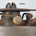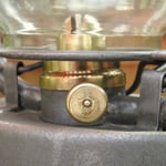 The lantern was missing the most important part which was the brass pedal which operates the globe lift. With the kind assistance and brilliance of Mike Lawless, he fabricated a beautiful solid brass pedal for this lantern. Thank you Mike!