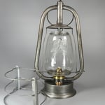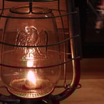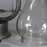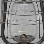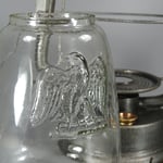 This lantern came with two globes. One is the beautiful pear shaped clear globe and the other globe embossed with the Eagle is most likely made by Klöpfel & Sohn. The clear globe is very heavy and has a 'smokey' appearance to it.
