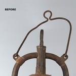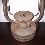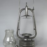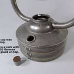 The fuel cap is missing and in it's place, until I find the correct one, is a cork with a 1903 German coin glued to the top of it. The lantern was also missing the cage. The cage you see is from a Nier 'Schildkröte' Kerosene lantern.