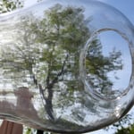 The globe is lined with multiple 'turn' marks from being hand blown and is etched with the swiss cross and the words: