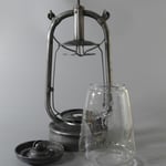 This lantern is possibly from the 1940's. The fuel cap is missing. The globe, however, is outstanding. It is embossed with the words 'LIETUKIS KAUNAS'. That