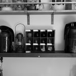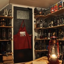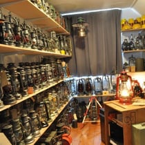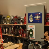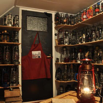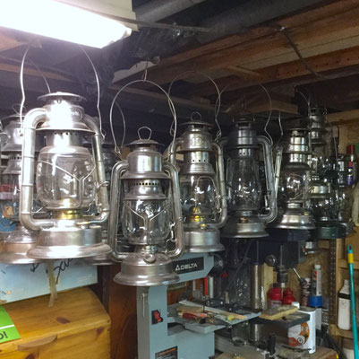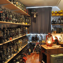 In speaking with other collectors, this is a common problem. Before you know it, you have lanterns hanging from the ceiling, all over your basement and in your closet and if you are not careful, they will end up in your refrigerator! Given that I didn't want that to happen (where would my German beer go?) I have been building my own shelves; each one slightly different from the other.