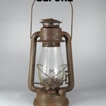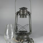 This is a beautiful and all original Austrian made Kerosene lantern. This lantern was pristine when I had purchased it, but then it was lost in transit for over 4 months. The package arrived very damaged. Most of the lantern survived, but there are now 2 dents in the fuel fount near the rim. Nonetheless, it is a charming and highly detailed lantern.