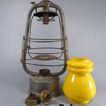 The globe is a hard to find 'cased' Yellow Helvetia Globe. Embossed on it is a lighthouse and the word 'RESISTENT'. The trade mark 'Resistent' was used since 1895 (?) by Egloff, Levy Fils, Wild & Wessel and other lantern mfgs.