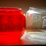 *Feuerhand 'Half Red/Half Clear )Fits 275/276) - Smaller globe fits Feuerhand Nr. 175. These came from Austria and would be used on a Wagon Lantern.