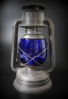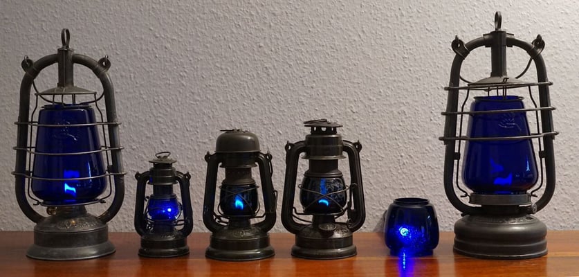 *The Luftschutz Black Out globe was made for the Feuerhand Nr. 201. When held at the right angle and light, you can see the blue.
