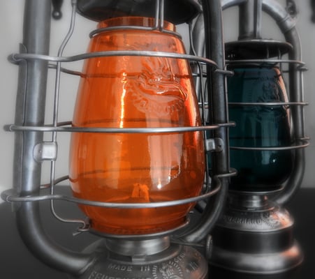 time frame of the 1930's the orange globes (not amber) were required for constructions at rail road crossings. Amber or clear globes were required for the illumination of road