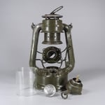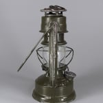 The FH 175 shown here is one of the last lanterns sold by Nier before the end of the World War 2. As the shortage of raw materials started to incapacitate production, it was necessary to make use of what was still to be found in the factory. At first glance, it seems like the parts are a mismatch. This was only due to the raw material shortage. The round style globes normally that we see in cold blast lanterns were replaced by simple, but yet fire-resistant glass cylinders. These cylinder globes, marked 'Jenaer Glass' and the number '3389' are rare and were only made between 1943-1945.