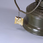 Attached to this lantern is a German War relic which is part of a German Rifle Striper brass clip. The lantern and/or metal tag is most likely a 'Veteran Bring Back". I have left this metal piece attached as it is part of the lanterns history and I do not support or endorse the symbolism. On one side of the metal stamp it reads: