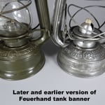 This lantern was made from 1939 and onward. It can be identified by the modified tank logo. In addition, after 1939 the lanterns were no longer tinned due to the war. The lanterns were then painted in a dipping and spraying process.