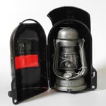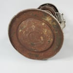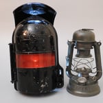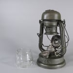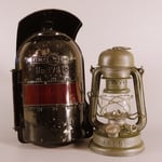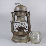 This lantern came from the Czech republic. It was in fairly rough shape and heavily pitted from age and use. The glass globe is etched with the mark Feuerhand 175.
