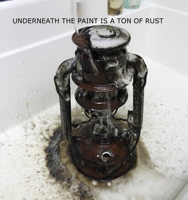 Underneath all the black paint, was a tremendous amount of rust. The entire bottom of the fuel fount was riddled with pinholes and deterioration. The tank is now sealed. There is also a fair amount of pitting from the rust.