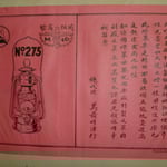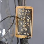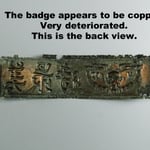 The badge (name holder tag) is in very delicate condition. It was most likely made from copper and only a little bit of the copper color remains on the back of the badge. This lantern, at that time, was delivered in a beautiful and highly detailed paper bag. See photos above.