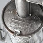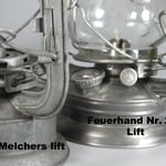 This lantern is a copy of the Feuerhand Nr. 257 and have the identical globe lifting system. See photo above. On the globe lifting plate is half of the remaining glass reflector. On a side note, the Feuerhand Nr. 257 is a copy of the Dietz Monarch lantern.