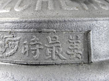 The embossed globe is an interesting design. It is hard to see, but on the 'wings' behind the man's head are the letters 'M & Co.'. The male figure appears to be an elderly Chinese man (monk?).