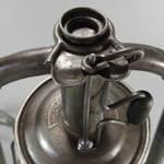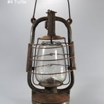 The lantern came from France with the original Turtle globe. It was fairly deteriorated especially near the burner insert and the airtubes have multiple pinholes in them. Too many to try to repair without ending up painting the whole lantern. I felt there was too much original tin left on the lantern and therefore did not want to paint it.
