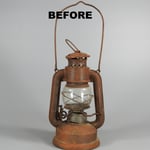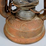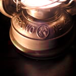 This is the smallest of the Frowo cold blast lanterns. The glass globe that came with this lantern was marked with the 'Indifferent' logo on one side and the Bat logo on the other side. It was not the correct globe for this lantern. Residing in the lantern now is an original etched Frowo Nr. 45 glass globe thanks to Hans-Werner.