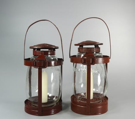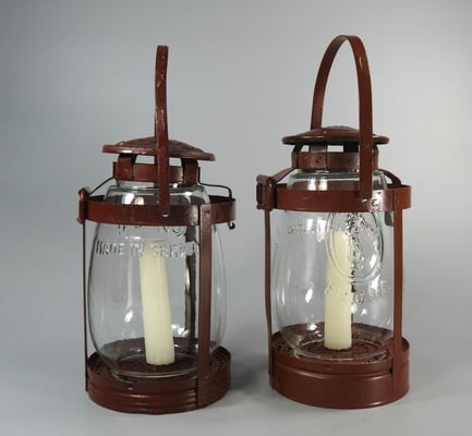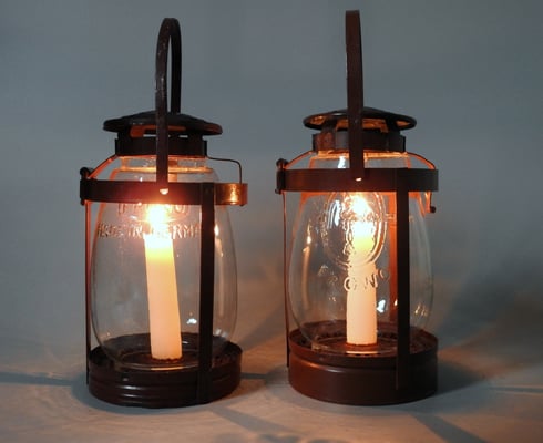 The globe is embossed with the Hund (Pup). Notice the height difference between the two lanterns.