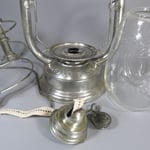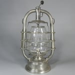 I received this lantern very much in this condition. It was very minimal restoration. The lantern, itself is post war as it does not have the pup on the fuel fount. The globe is much older and is pre-war; sometime in the 1930's.