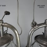 Side by side, with a post war Frowo Nr. 520, there are significant differences. See the photos above in the gallery. Most notable is the different mounts for the bail. The burner is also different and so is the design of the crank (kurbel). The other interesting detail is that the pup globe from the post war Frowo weighs in at 5.8 Ounces. The pup globe, which is original to the pre war model above, weighs in at 8.1 Ounces. This is a significant difference in the amount of glass and the weight is obvious when you hold both globes in your hand.