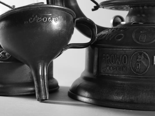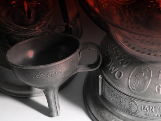 It's always nice to display 'add ons' with the same mfg. of the lantern. This post war Frowo funnel came from Zschopau, Germany. What I loved about it was the beautiful script embossed