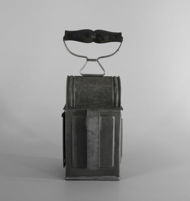 There are a few remnants of the asbestos liner insert still present. The double hat with insert was designed to prevent the wooden handle from getting too hot during prolonged use.