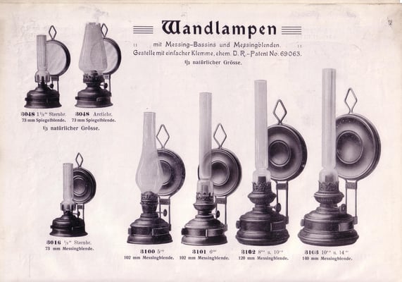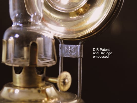Star burners, as they are called, are the smallest that Stübgen had for wall or table lamps.The height, not including the reflector, is only 6.25 inches tall. On the reflector, it is embossed with the Bat logo and the words 'D R Patent'.