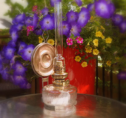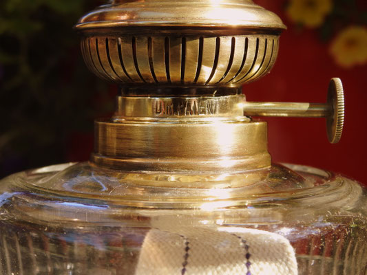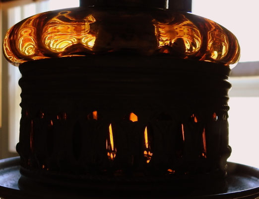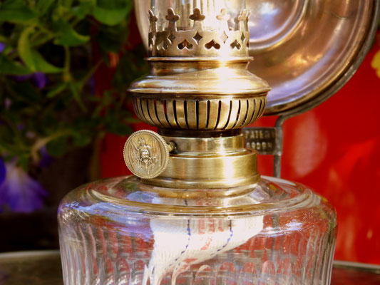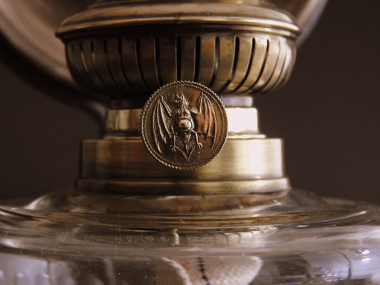 When I received the lamp from Ochtendung, Germany, it had the wrong reflector and Kosmos burner. With the incredible generosity of Dan Bjorn Landschoof, he supplied the correct reflector and beautiful Bat burner which is a 10''' burner. It is now complete and accurate.