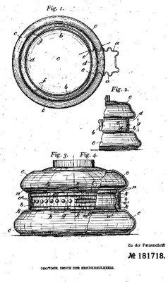 "The glass basin (tank) is from Stübgen. (Meaning the tin holder for the glass fuel tank) . D.R.P. 181718, which means German Reichs Patent No. 181718. This is not about the glass, but the