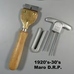 The last photos in the gallery show a beautiful brass MARO D.R.P. scraper and a MARO D.R.P. Wine cork puller (Korkenzieher). These were made possible for the collection by Dan-Bjoern Landschoof. Thank again Dan!!!