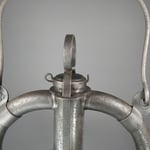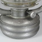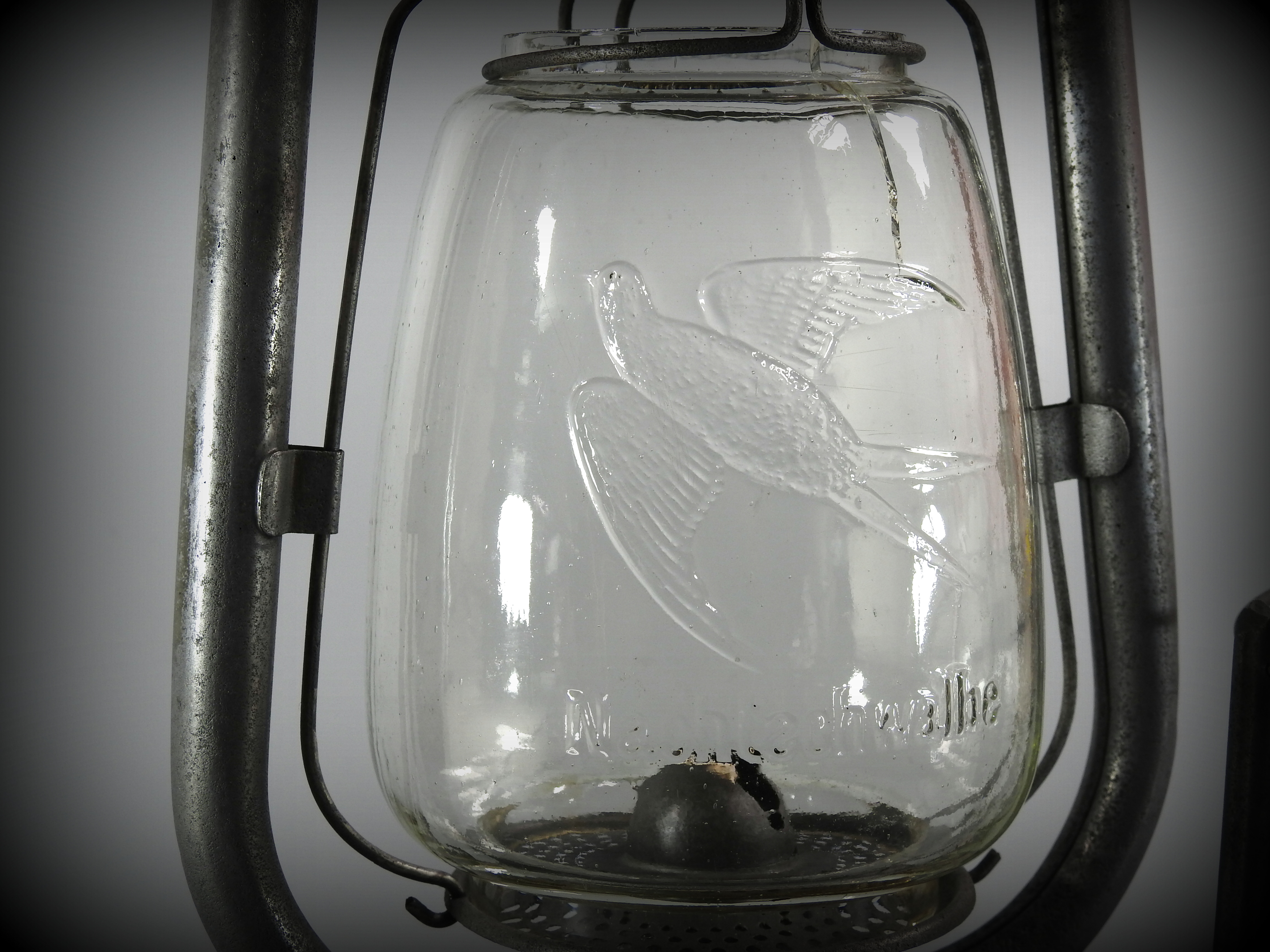 This is the second version of the Nachtschwalbe Lantern by Georg Müller. On the fount, it is stamped with D.R.G.M. in a circle. Deutsches Reichs-Gebrauchsmuster = Utility model of the German Reich. There is also a symbol that resembles the 'division' symbol, but I do not know what it may represent. The top of the tube cap is also stamped D.R.G.M. The cap is held in place by a cotter pin.