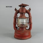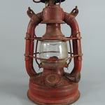 This lantern came from Wolfshal, Austria and was in excellent condition. It has most of its original tin which was well preserved underneath the red paint. The Orkan Nr. 222 is the same as the Bat Fledermaus Nr. 666.