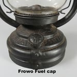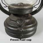 It has a Frowo fuel cap which would not have been original to the lantern unless those were the parts available at the time this lantern was produced.