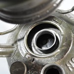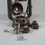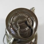Note in the photos, that the rubber gasket inside the locking mechanism had a hole punched in it. Most likely one of the previous owners did not know how this lock worked and could not figure out how to get the wick down inside the fount. This does not affect how the lantern works other than now I can not guarantee it is 100% leak proof.