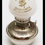 In the photo gallery above, I have the Vacuum Oil company lamp next to the almost identical Hasag Nr. 107 oil lamp. The frosted globe in this little lamp was most likely etched with the Sunflower Logo on it but has long been washed off. I have an image of what it may have looked like with the etching.