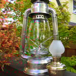 This little oil lamp is most likely made by Hugo Schneider (HASAG). It is brass on top and nickel plated for the lower part of the fuel fount. As with my first Hasag Type 51 Vacuum Oil company Kerosene lantern, it was found in Portugal. For more information on the link to Hasag and the Vacuum Oil company, CLICK HERE.