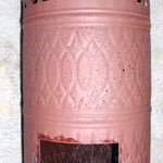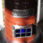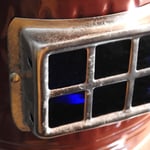 The nickel plating was all gone; the remaining enamel was not in very good condition and overall very rusted underneath the enamel. This would be a financial investment in this heater, but well worth saving giving how rare it is. K&T produced 'Blue Lloyd' Lamps also. I've not been able to determine why it is called the 'Blue Lloyd'.