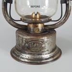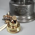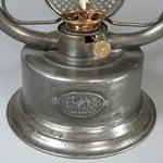 Actually, this lantern has more repairs on it than I can count. Someone wanted to keep this lantern functioning for as long as possible. The tabs on the upper chimney for the globe holder were broken but have now been soldered back into position. The brass burner cone and burner are like brand new and are fully functional. The company that made the burner is noted above in the photo gallery. The fuel tank has been sealed.