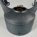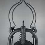 Notice the double bails. If you pick the lantern up by both bails, the lantern stays lit. If you pick it up by only the larger bail or should it get knocked over, the brass snuffer comes up and over the wick to extinguish the flame. It has a spring loaded bottom which causes the snuffer to move. You must pick up the lantern by BOTH bails or you will extinguish the flame.