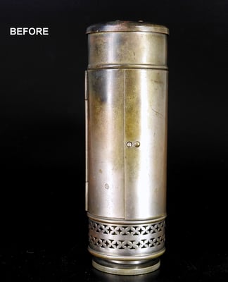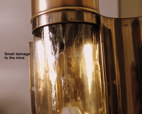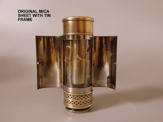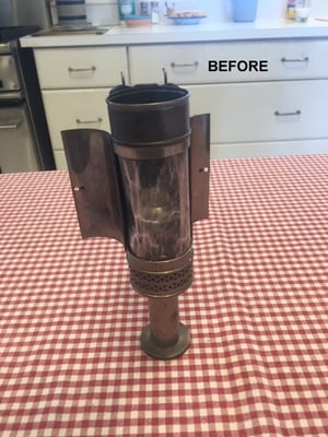 The Mica sheet was a challenge to remove. It is 98% intact with only one small area of damage. Overall, it was difficult to clean and restore given the amount of melted old wax inside the entire lantern.