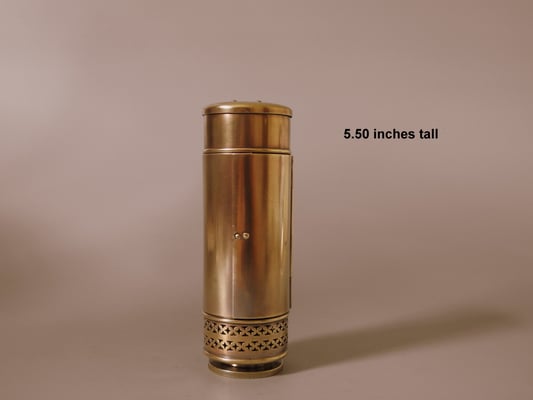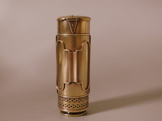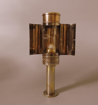 This is actually a beautiful solid brass, of very high quality, candle lantern. It is identical to the candle lantern made by MAW of London although it does not have the MAW company logo. Instead, it has a beautiful mark of two crescent moons faced opposite. I have yet to identify who this mark belongs to.