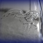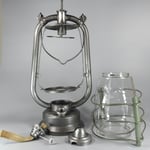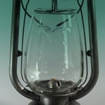 The globe is clear with a flying Petrel in raised relief. On the fount it is embossed STURMVOGEL and then a Petrel with a lantern in its beak. The globe guard - cage - was in extremely bad condition. It has been repainted with RAL 7009, Green Gray, which matched fairly close to the paint that was on the lantern.
