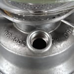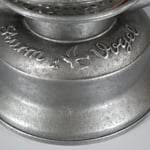 The three slash marks and the number 7, on the right side of the fuel cap, indicate the size of the wick which is approximately 15mm. On the fount is the caption 'NR. 1002' and then