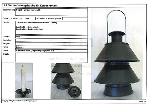 This is a WW2 'black out' Air raid candle lantern that was used in a hospital in Müller, Basel, Switzerland. Full documentation was found in the Swiss Army Museum Catalog.